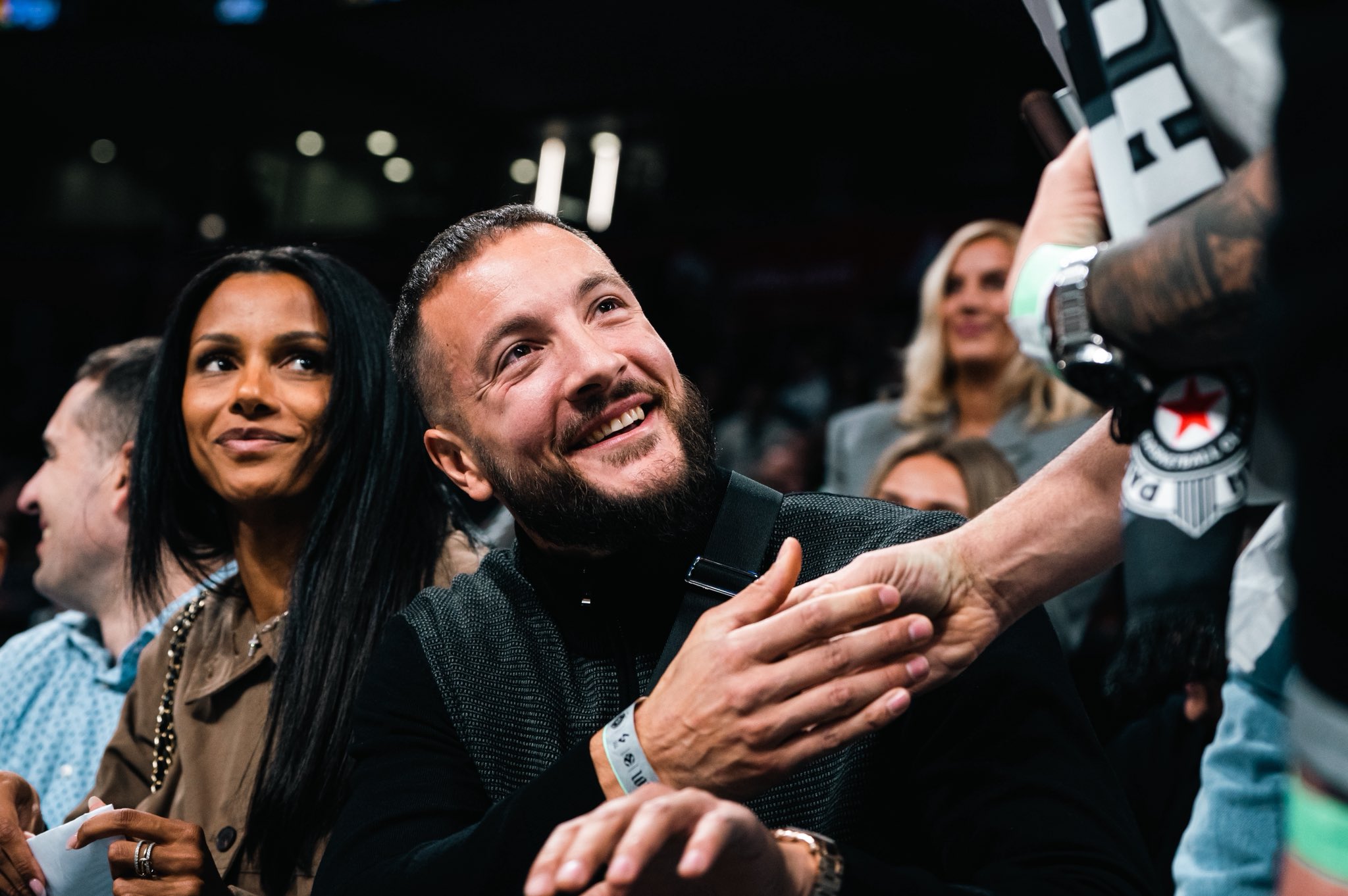 Među prisutnima u dvorani bio je i bivši kapiten crno-belih, ujedno nekadašnji igrač francuskog tima, Žofri Lovernj, koji je dočekan uz gromoglasan aplauz i ovacije sa tribina. Publika nije zaboravila njegov doprinos, pa je Francuz ponovo osetio posebnu emociju koju nosi duel u Areni.