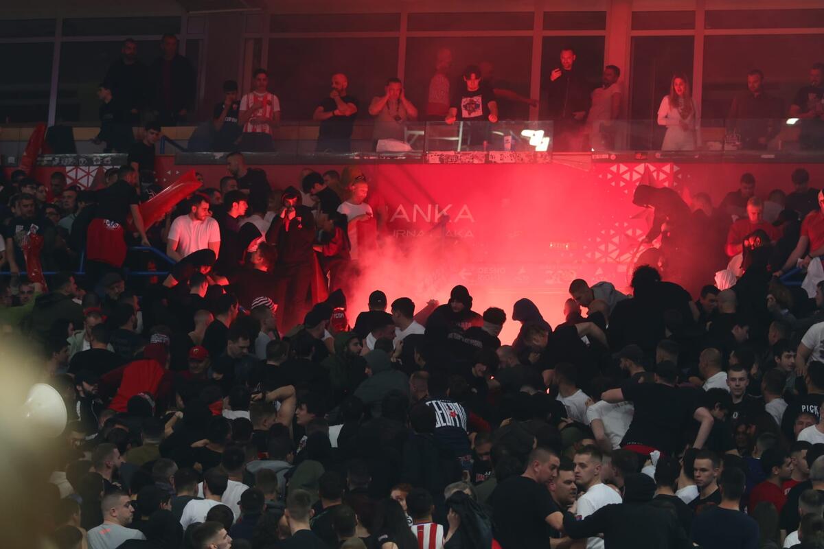 Kasnije se ispostavilo da je haos nastavljen i u hodnicima Beogradske arene, gde je došlo do direktnog sukoba navijača i žandarmerije. Na snimcima koji su se pojavili na društvenim mrežama vide se baklje, predmeti koji lete ka policiji, ali i panika i stampedo koji je u jednom trenutku nastao.